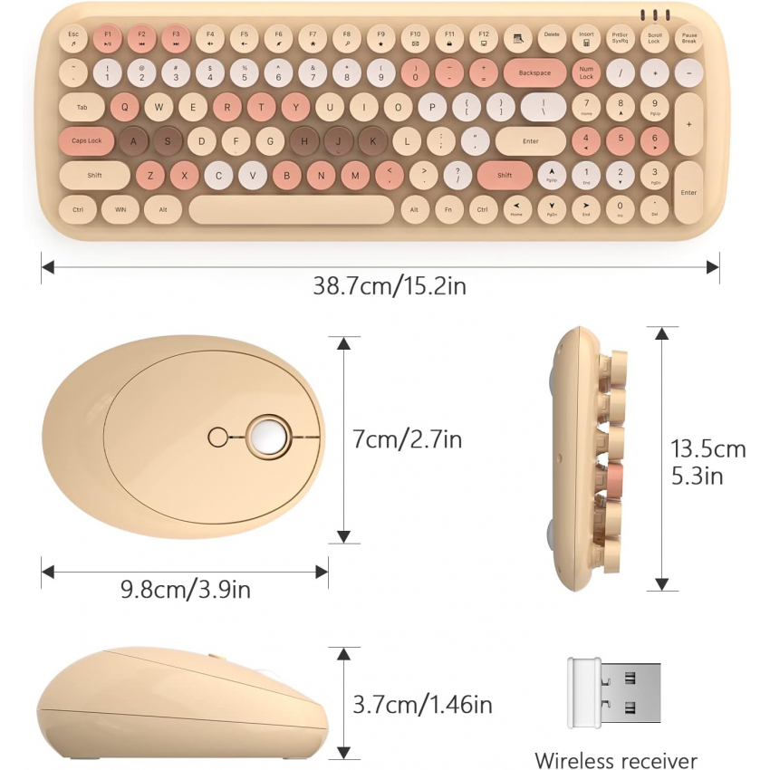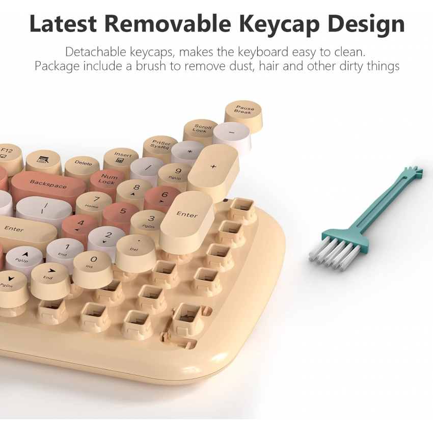Беспроводная клавиатура и мышь MOFII, полноразмерная беспроводная клавиатура в стиле ретро-пишущей машинки с оптической мышью для компьютера/ноутбука/Windows/Mac (цвет Milk Tea Colorful-B)