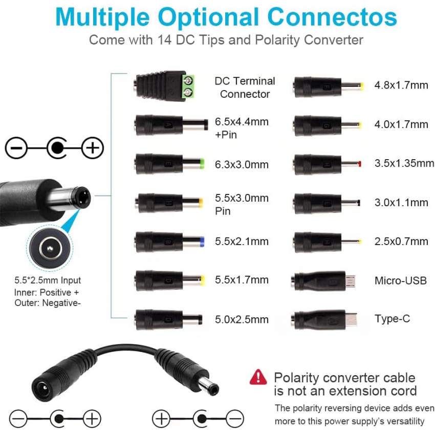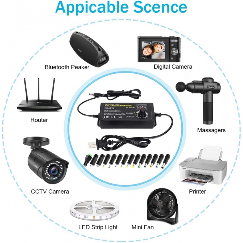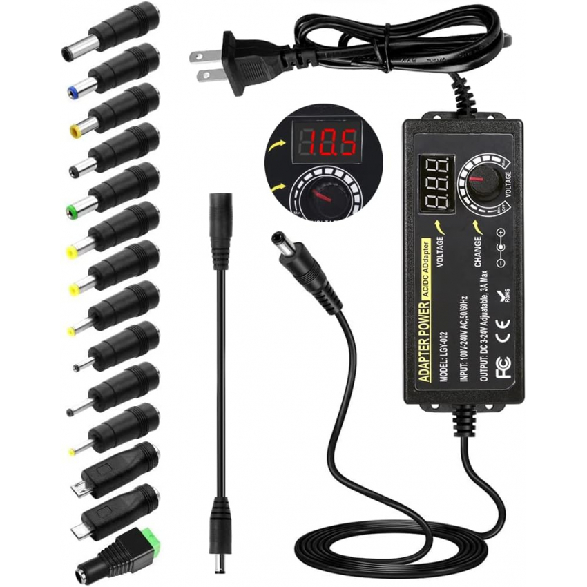 Блок питания 72 Вт, регулируемый, постоянного тока 3–24 В, универсальный импульсный адаптер переменного/постоянного тока, преобразователь переменного тока в постоянный 100–240 В со светодиодным дисплеем напряжения и 14 разъемами, для бытовой электроники 3–24 В — максимальный ток 3000 мА.