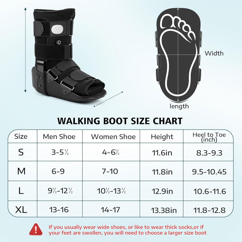 Ботинок для ходьбы, травмобезопасный ботинок для стопы и лодыжки, размер L Надувные подушки безопасности повышают устойчивость и компрессию голеностопа. Подходит для правой или левой ноги. Постепенные воздушные камеры обеспечивают индивидуальную компрессию, а также повышенный комфорт и поддержку. Алюминиевая опора с хорошей пластичностью обеспечивает надежную фиксацию лодыжки и может подстраиваться под контуры ноги пользователя. Превосходная конструкция подошвы качающегося типа делает шаг пользователя более устойчивым и естественным.