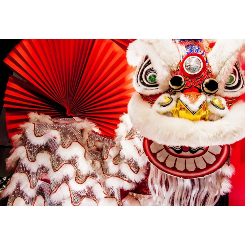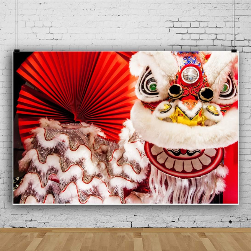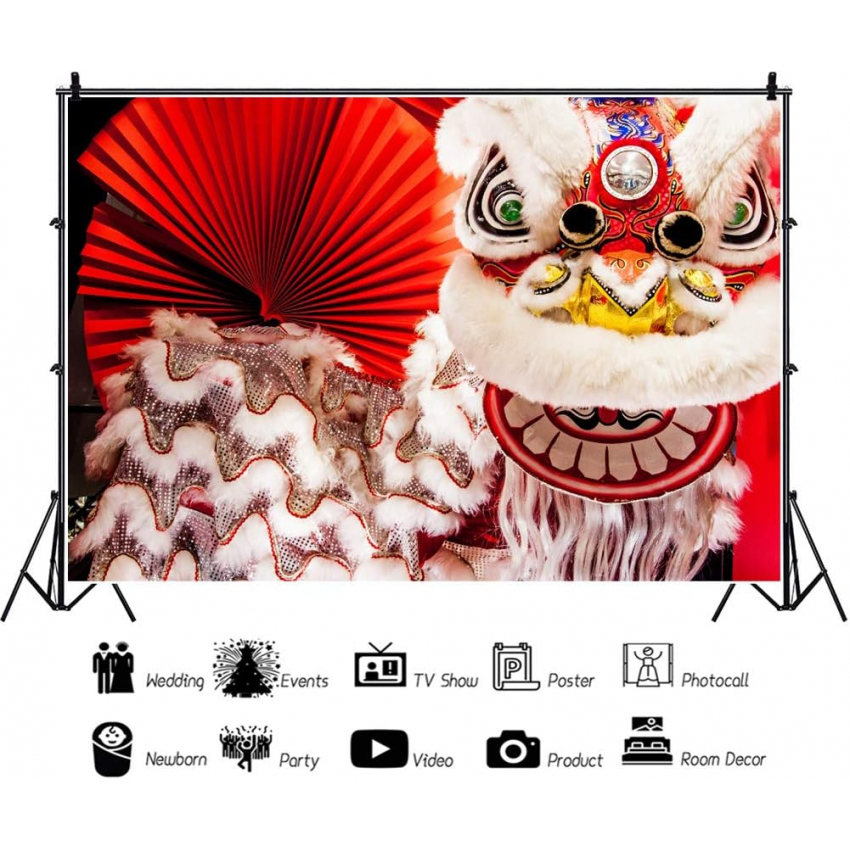 Фон для фотосъемки Leyiyi 2.15x1.52 метра с изображением танца льва, красный складной веер, китайский новогодний фон, сцена весеннего фестиваля, студийный реквизит для новогоднего семейного декора Винил
