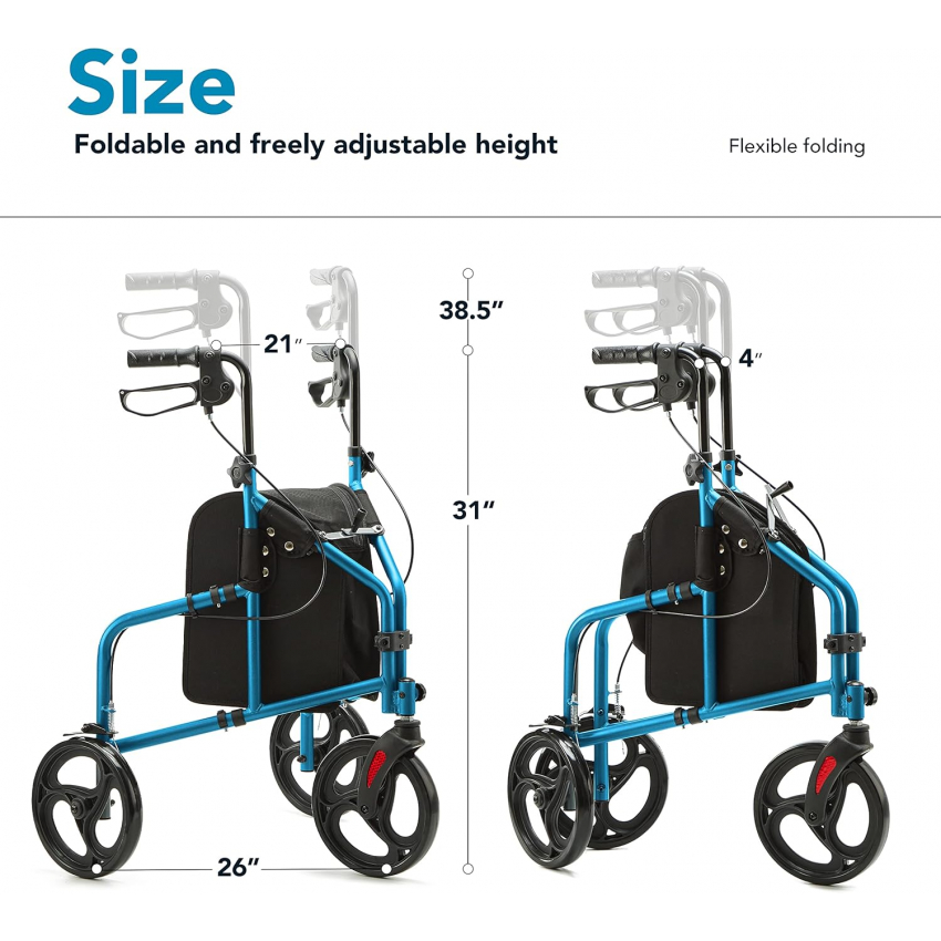 Ходунки OasisSpace 3-х колесные для пожилых людей — складные, легкие, с большими колесами 10 дюймов и большой сумкой для хранения Бренд OasisSpace Цвет Синий Материал Алюминий Вес товара 8,89 килограмма Размеры продукта 66 см (Д) x 53,3 см (Ш) x 97,8 см (В)