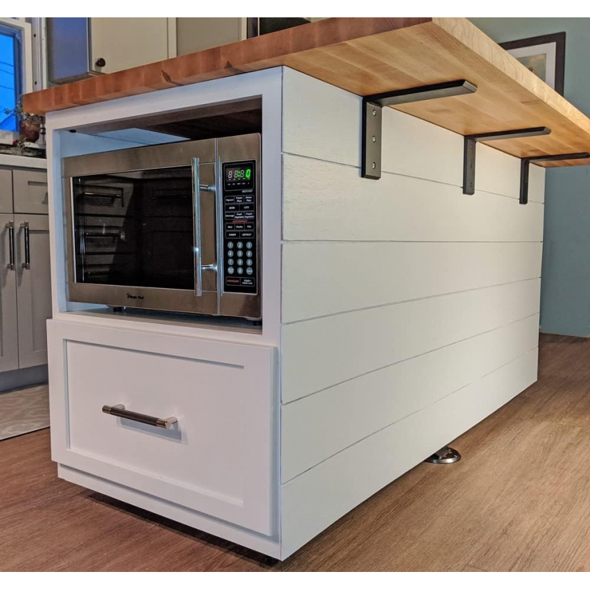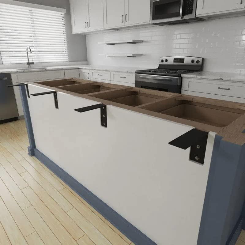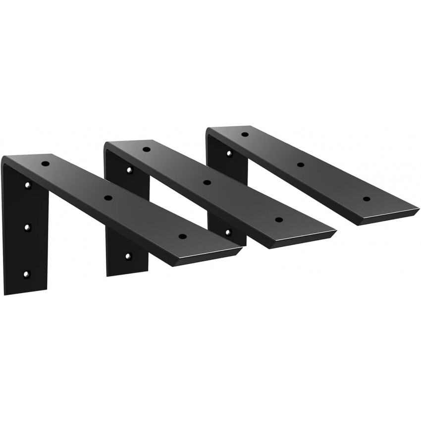 Прочность: гранитные столешницы тяжёлые и требуют надёжной опоры. Кронштейны для столешниц изготовлены из прочного железа толщиной 10 мм, что обеспечивает достаточную поддержку и предотвращает провисание и растрескивание столешницы. Грузоподъёмность пары кронштейнов составляет 300 фунтов (147 кг). Комплект из 3 кронштейнов для столешницы, 12 дюймов, прочный, толщиной 3/8 дюйма, черный гранитный кронштейн для столешницы, 40x20x1 см, Г-образный кронштейн для полки, каминные кронштейны для столешниц из кварца, гранита, дерева, бетона или ламината