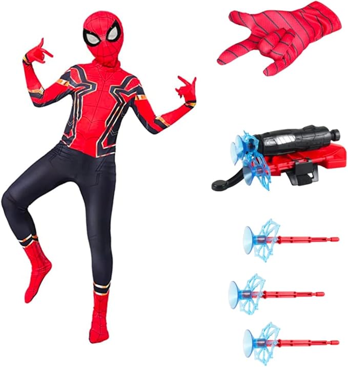 Костюм Героя-паука для детей от 5 до 7 лет + перчатка для стрельбы паутиной + маска Героя-паука. В набор входят игрушка Героя-паука и костюм.