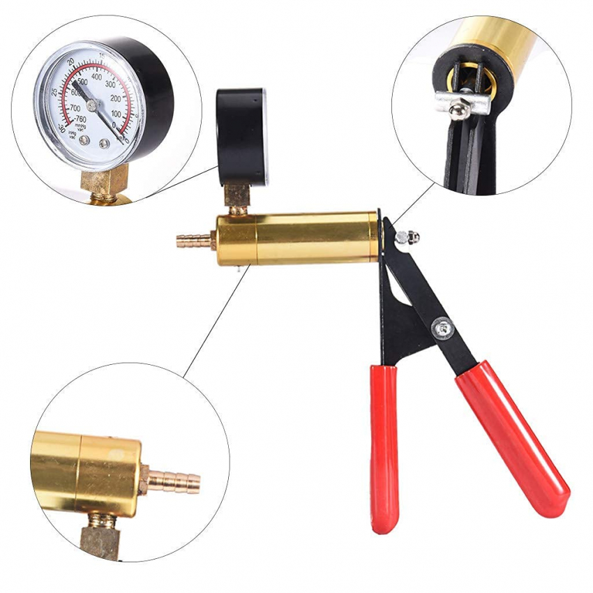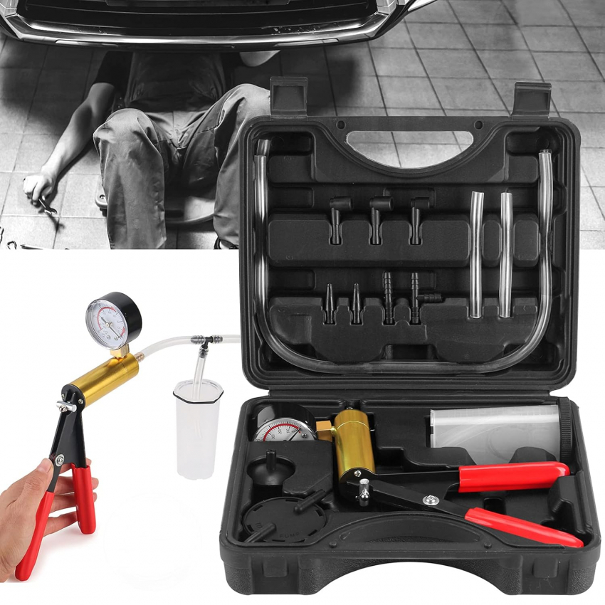 Набор для прокачки тормозов HTOMT 2 в 1: ручной вакуумный насос для автомобилей, защитный кейс, адаптеры, система для прокачки тормозов и сцепления одним человеком Вакуумметр: Оснащен вакуумметром, удобным дисплеем давления. Диапазон давления: 0-30 дюймов рт. ст., 0-760 мм рт. ст.