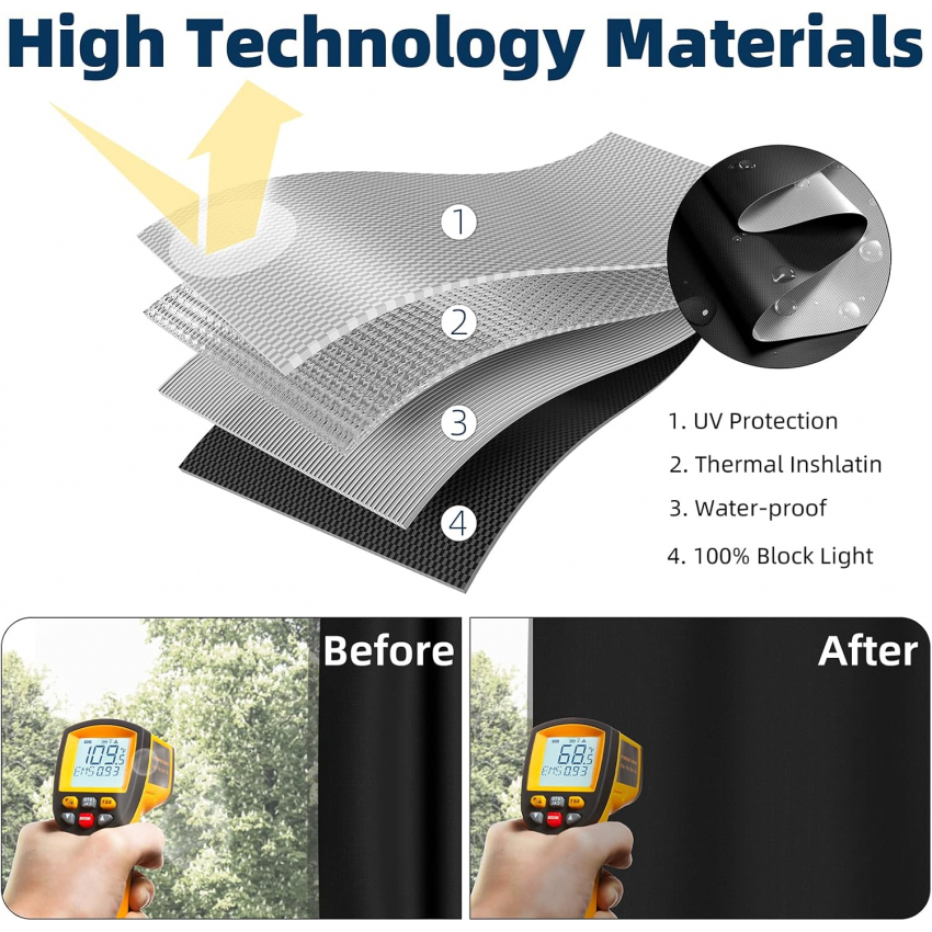 Компактная и эффективная портьера Nighton размером 1,5 × 3 м обеспечивает полное затемнение и комфортный микроклимат в помещении в любое время суток. Плотная чёрная ткань не пропускает солнечный свет, помогая создать идеальные условия для сна, отдыха или работы, особенно в летнюю жару или при уличном освещении ночью.
