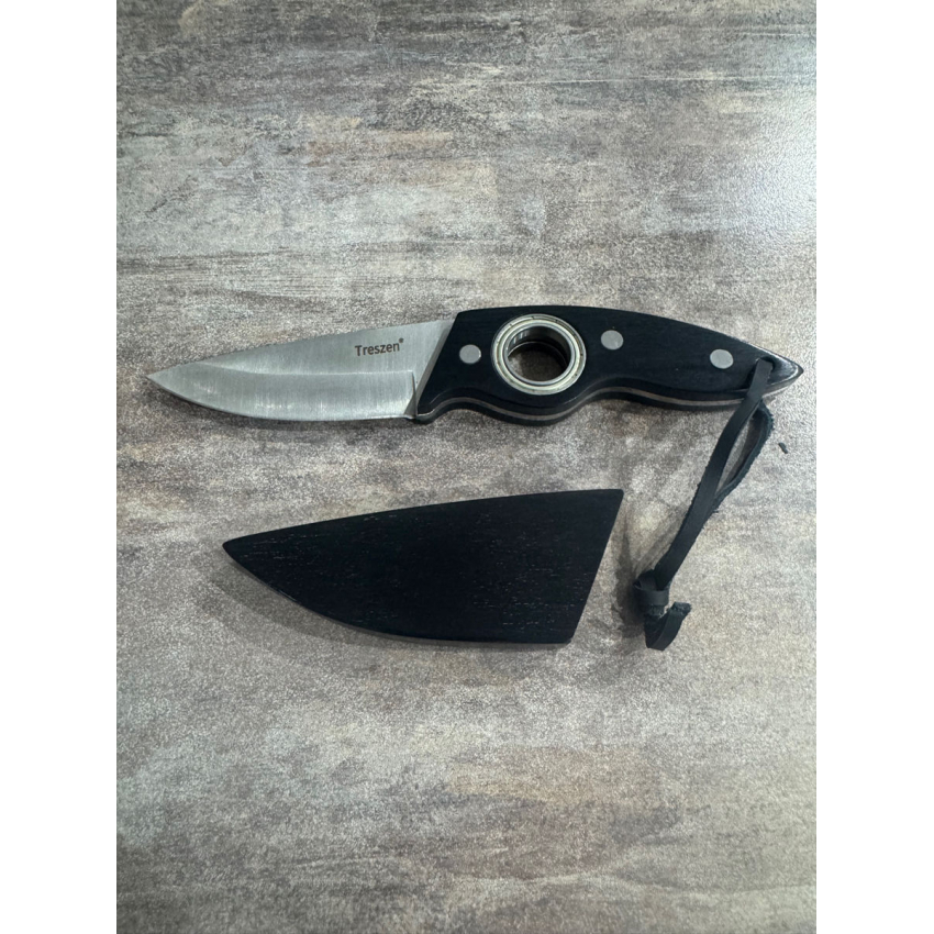 Мини-нож Фиксированный клинок С кольцом под палец Деревянные ножны и латунный фиксатор