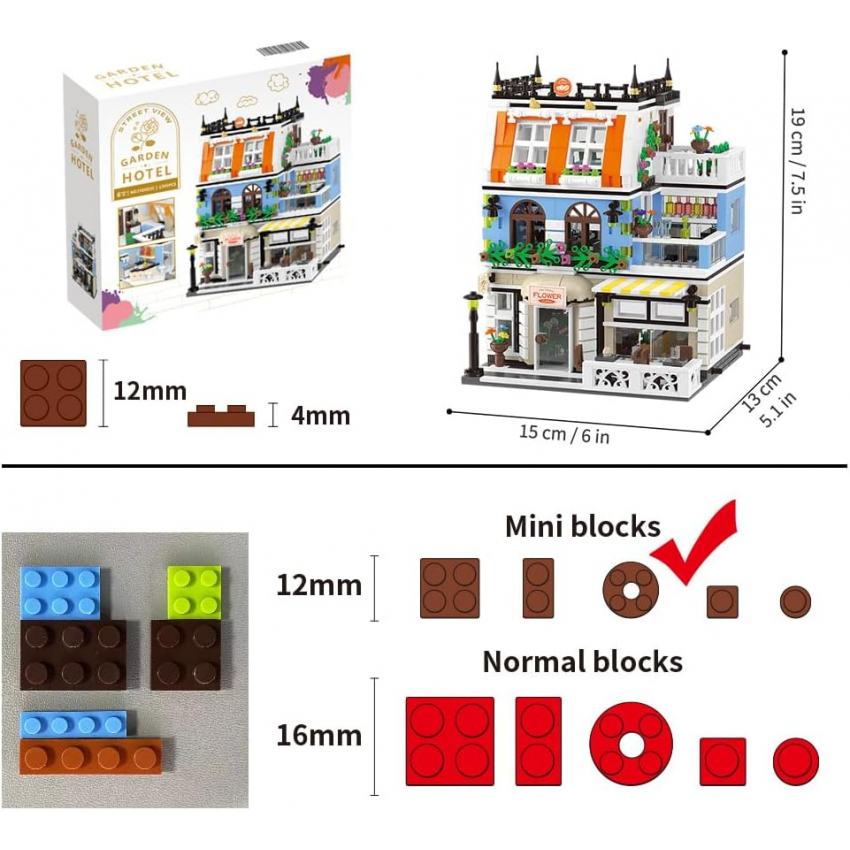 Строительный набор «Городской сад, отель», архитектурные блоки для игрушек для взрослых и подростков, 1300 мини-кирпичей со светодиодами