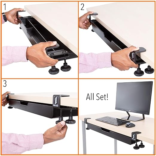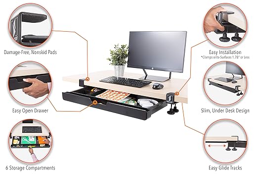 Устойчивый ящик для стола с зажимом Stand Steady | Система хранения под столом с простой установкой без повреждений — не требует сверления | Шестисекционный органайзер для ручек, карандашей, скрепок и многого другого! (81,5 см (Д) x 30 см (Г) x 14 см (В)) Model ATDR27BL