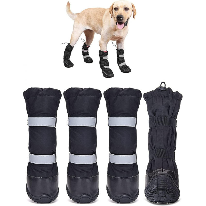 Водонепроницаемые сапоги для собак для зимы, снега и дождя, нескользящая обувь для собак средних и крупных пород, расширенные манжеты для защиты лап для прогулок на свежем воздухе, светоотражающие дождевые сапоги для собак Размер XL (ширина стельки 7.6 см) для веса 44–50 кг
