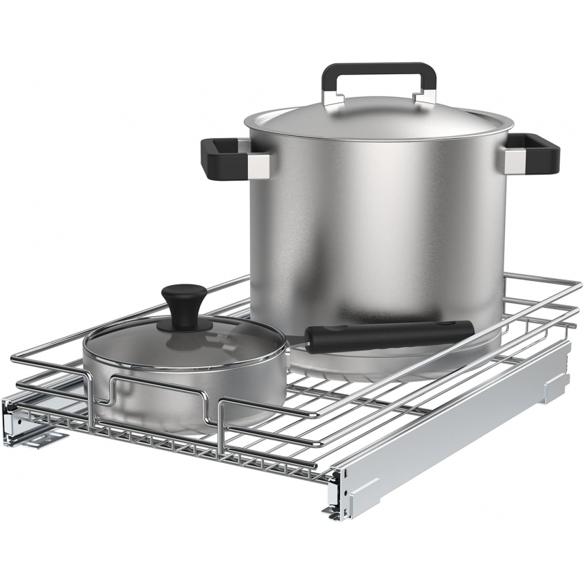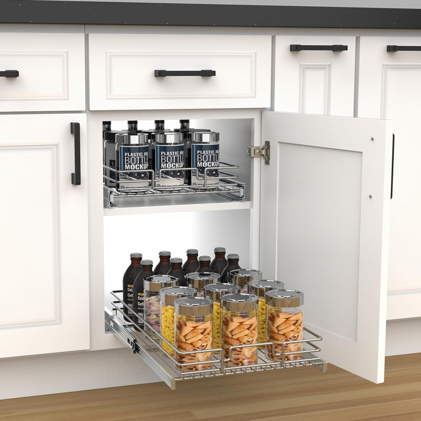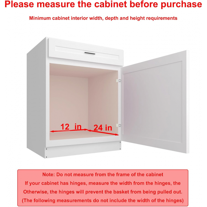 ОПТИМИЗАЦИЯ ПРОСТРАНСТВА Общие размеры: 11 дюймов (Ш) x 21 дюйм (Г) x 3,72 дюйма (В) (максимальный размер, фактический размер корзины будет на 1-2 дюйма (2,5-5 см) меньше). Подходит для проёма шкафа шириной не менее 12 дюймов (30 см), глубиной 24 дюйма (61 см) (размеры указаны без учёта петель). Размер корзины: ширина 9,69 дюйма (Ш) x глубина 20,98 дюйма (Г) x высота 2,76 дюйма (6,7 см) Премиальный прочный усиленный стальной каркас, выдерживающий нагрузку до 45 кг на полку. Отделка позволяет использовать стеллаж в ванной комнате или на кухне с повышенной влажностью.