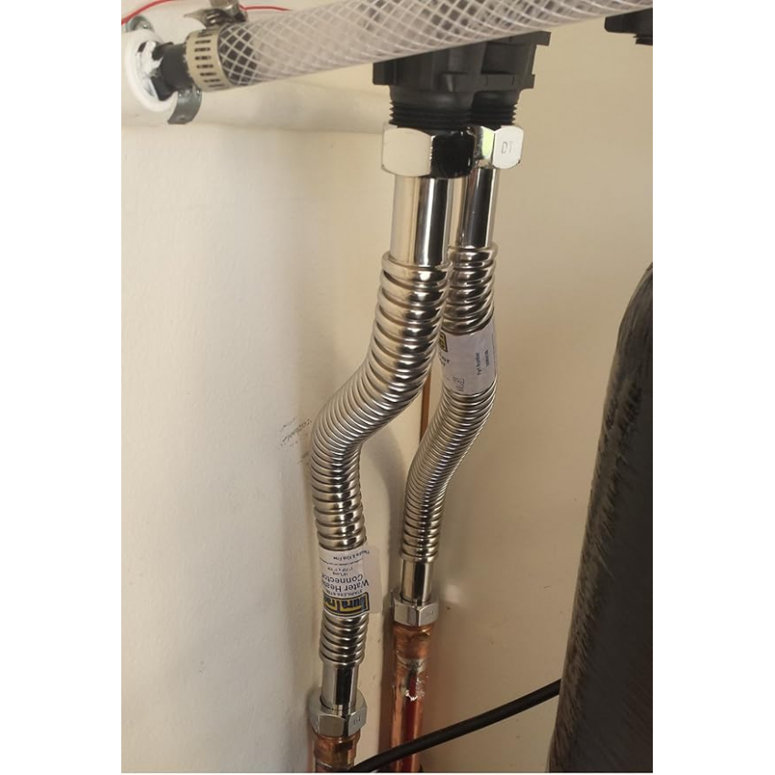 2 прочных гофрированных гибких водопроводных соединителя из нержавеющей стали с толстыми шайбами для водонагревателя и умягчителя воды (18x1 FIP) Идеально подходит для подключения водонагревателей, проточных водонагревателей и умягчителей воды. Выдерживает высокое давление 125 фунтов на кв. дюйм. Размер: 1 дюйм x 18 дюймов. Поворотное соединение с внутренней резьбой гайки обеспечивает гибкую и легкую установку без перегибов Соответствует закону об отсутствии свинца Сверхпрочные шайбы