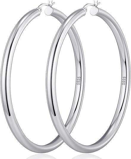 массивные серьги-кольца из стерлингового серебра женские полые трубчатые серьги-кольца толстые гипоаллергенные легкие большие серьги-кольца 60 мм серебро 925 пробы вес изделия - 14г