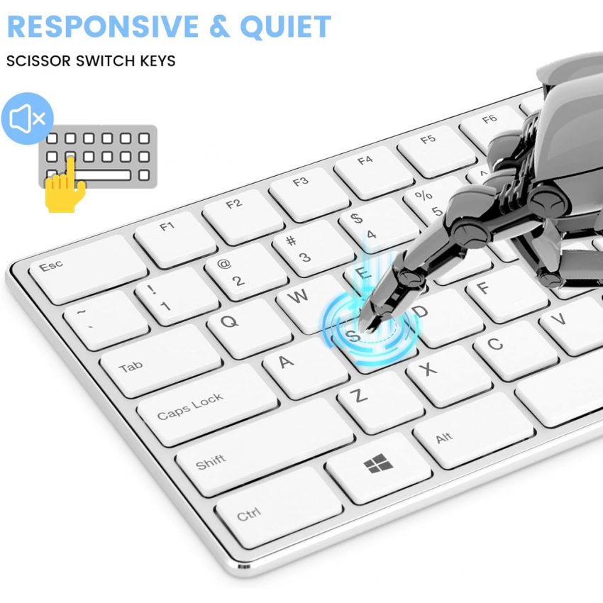 Беспроводная клавиатура K01R, тонкая и компактная беспроводная клавиатура 2.4G с цифровой клавиатурой, длительным сроком службы батареи, без задержек для ПК, ноутбуков, Windows,