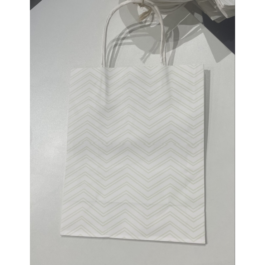 Бумажный пакет с зелеными полосками в виде треугольных стрелок