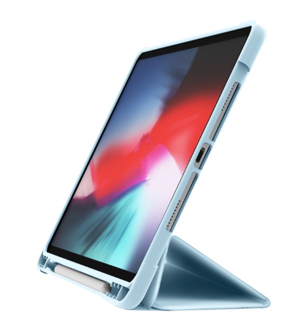 Голубой цвет придаёт аксессуару аккуратный и свежий вид, подходящий как для повседневного, так и для делового использования. Все вырезы точно совпадают с разъёмами, камерой и кнопками управления. Чехол плотно прилегает к корпусу планшета, не мешая его функциональности.