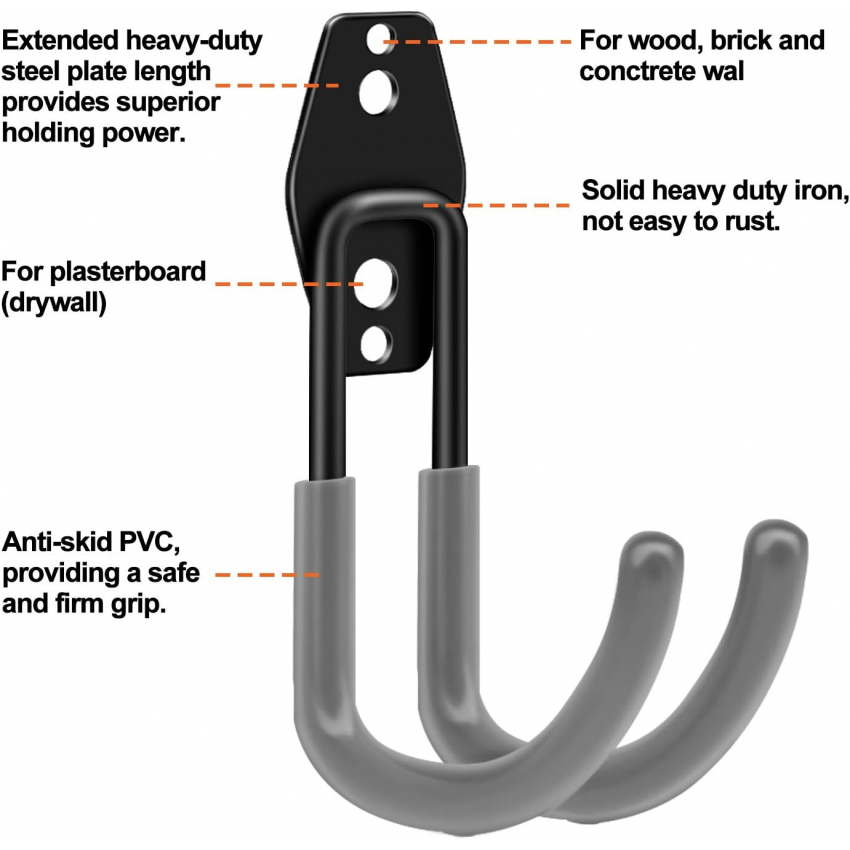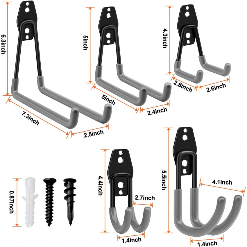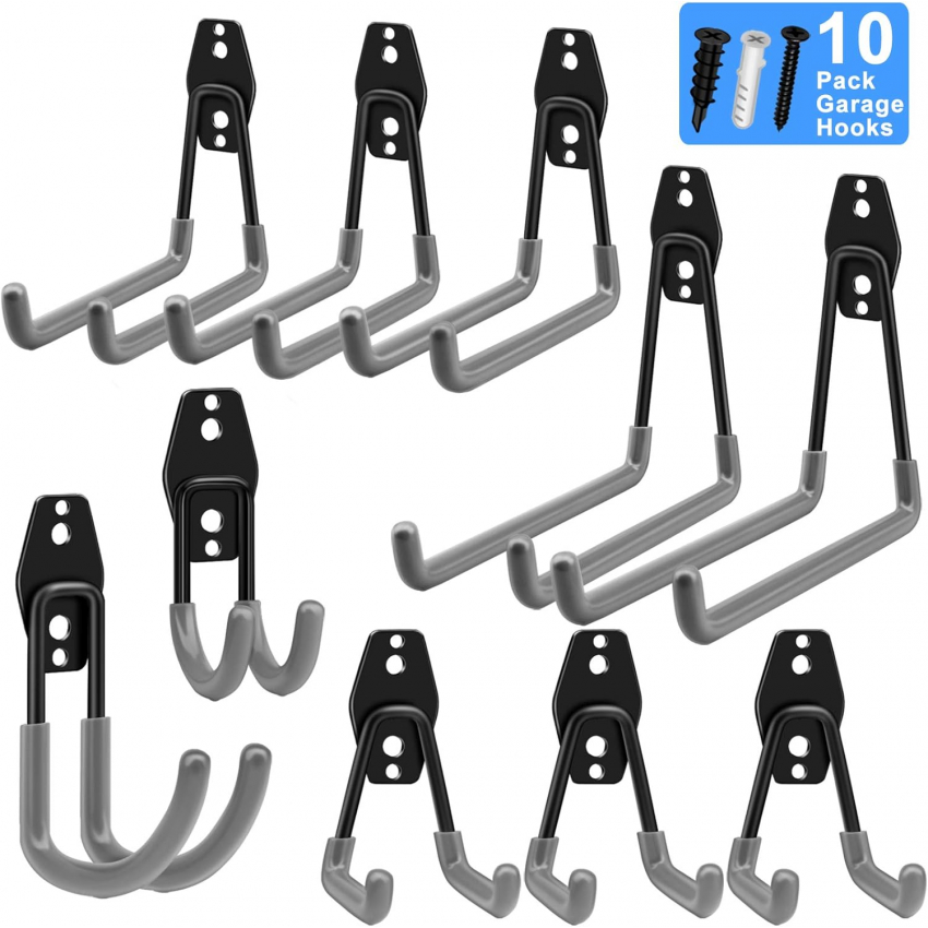 Крючки для гаража, стальные крючки для хранения в гараже Inteli-topia, двойные, сверхпрочные, для организации хранения электроинструментов, лестниц, велосипедов, крупногабаритных предметов, упаковка из 10 штук.