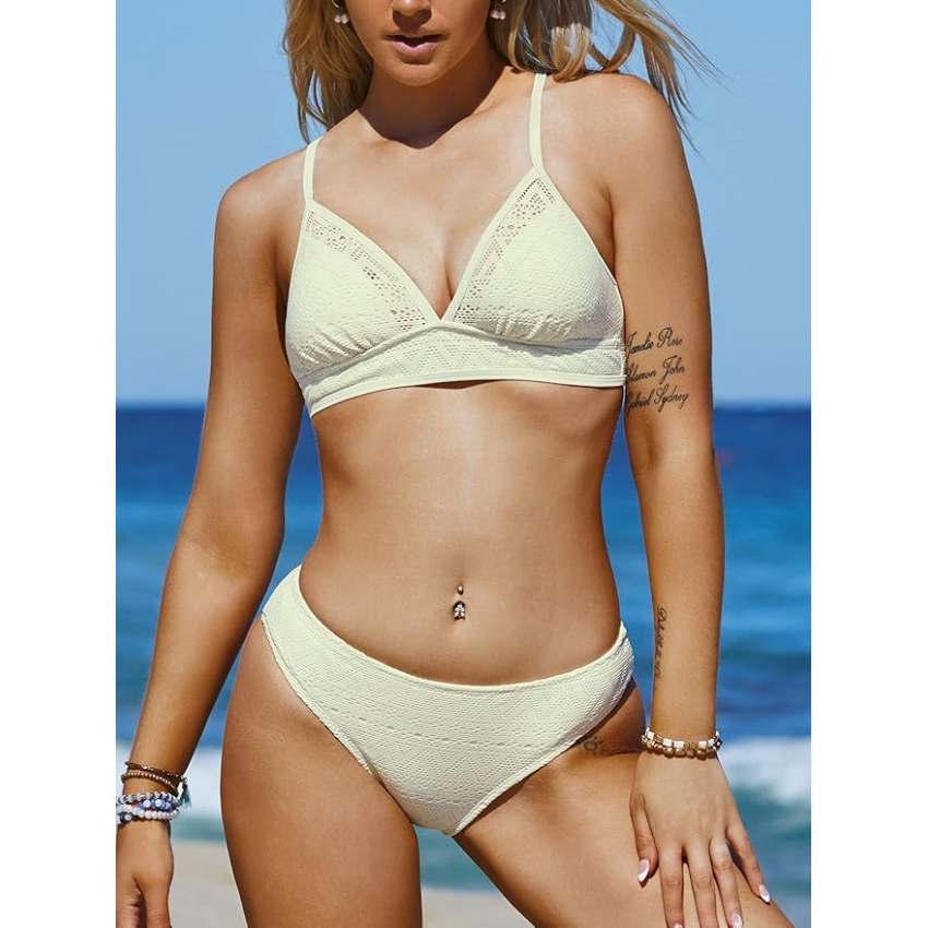Этот купальник с сетчатой отделкой и треугольным верхом подчеркнет вашу фигуру, создавая эффектный и привлекательный силуэт. Двухкомпонентный комплект с перекрещивающимися завязками на спине идеально подходит для разных типов телосложения, обеспечивая комфорт и стиль. В комплекте съемные чашечки с поддержкой на косточках для удобства и дополнительной формы.