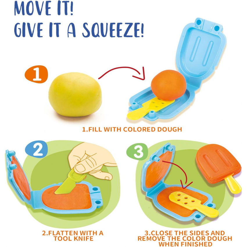 Этот яркий и увлекательный набор позволяет ребёнку почувствовать себя настоящим мастером по созданию мороженого. В комплект входят 5 баночек цветного теста по 28 граммов (1 унция), выполненного в насыщенных, аппетитных оттенках, напоминающих классическое мороженое.
