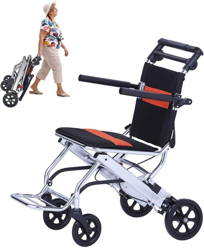 Ручная инвалидная коляска (МОДЕЛЬ SYIV100-SY870) Складная транспортная инвалидная коляска, сверхлегкие портативные дорожные инвалидные коляски с ручным тормозом, легкие тележки для инвалидных колясок из алюминиевого сплава для пожилых людей и детей (размер: стандартный)