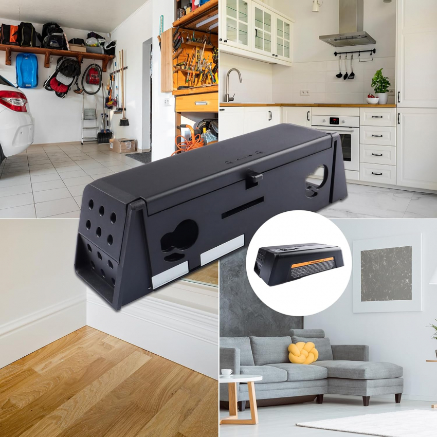 Для использования достаточно нанести немного приманки в специальное углубление, вставить камеру в устройство, разместить ловушку вдоль стены и включить питание. После поимки мыши камеру можно выбросить, не касаясь содержимого — процесс полностью исключает контакт с грызуном.