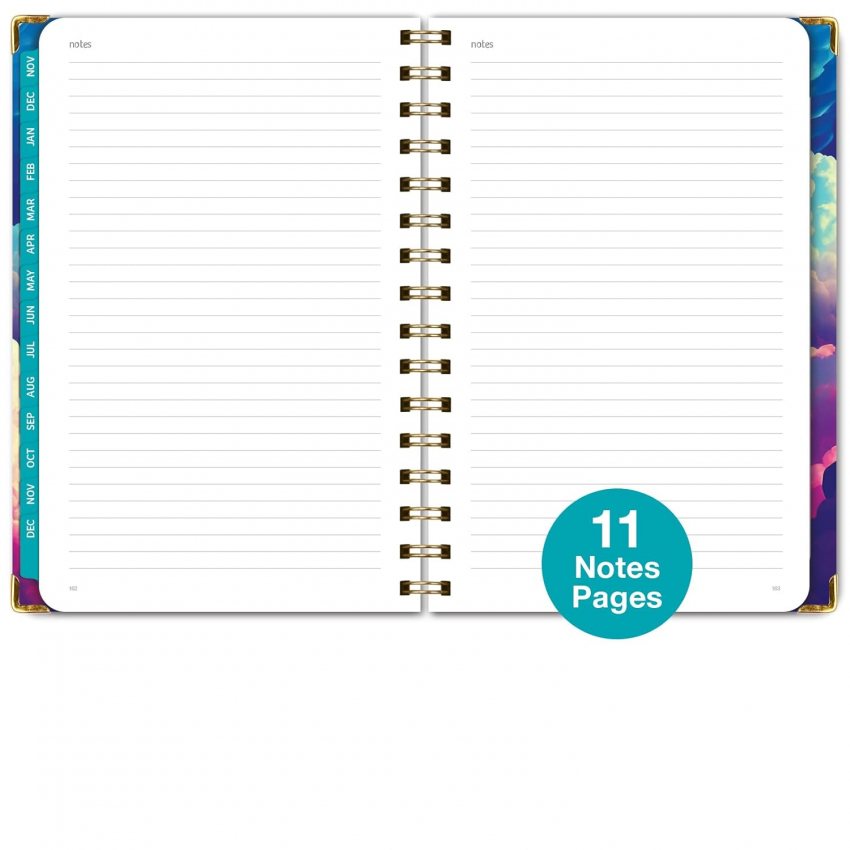 Этот прочный твердый переплет планер на 2024 год охватывает период с ноября 2023 по декабрь 2024 года. Размер 5.5"x8" идеально подходит для ежедневных записей, планирования недели и месяца, а также включает годовой календарь для общего обзора. В комплект входит закладка для быстрого доступа к нужной странице, карман для хранения важных заметок и документов, а также набор стикеров с изображением радуги и облаков, который поможет сделать ваше планирование ярким и организованным.