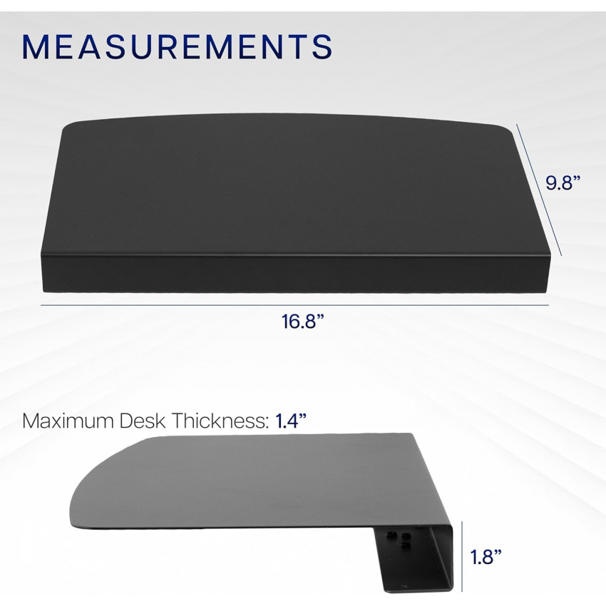 Угловая настольная платформа VIVO 17 дюймов для установки подстольных клавиатур на Г-образных рабочих станциях, черная, DESK-AC07S Совместимость: платформа размером 16,8 x 9,8 дюйма крепится к столам толщиной до 1,4 дюйма и подходит для подставок под клавиатуру VIVO: MOUNT-KB01, MOUNT-KB03B и MOUNT-KB04C.