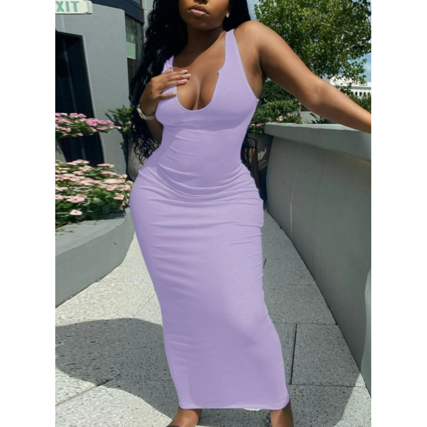 Это стильное платье с глубоким круглым вырезом и без рукавов станет отличным дополнением гардероба для тёплого сезона. Изготовленное из высококачественного хлопка с эластаном, оно идеально сидит по фигуре, обеспечивая комфорт и свободу движений. Лёгкое и эластичное, оно идеально подходит как для повседневных прогулок, так и для неформальных встреч.
