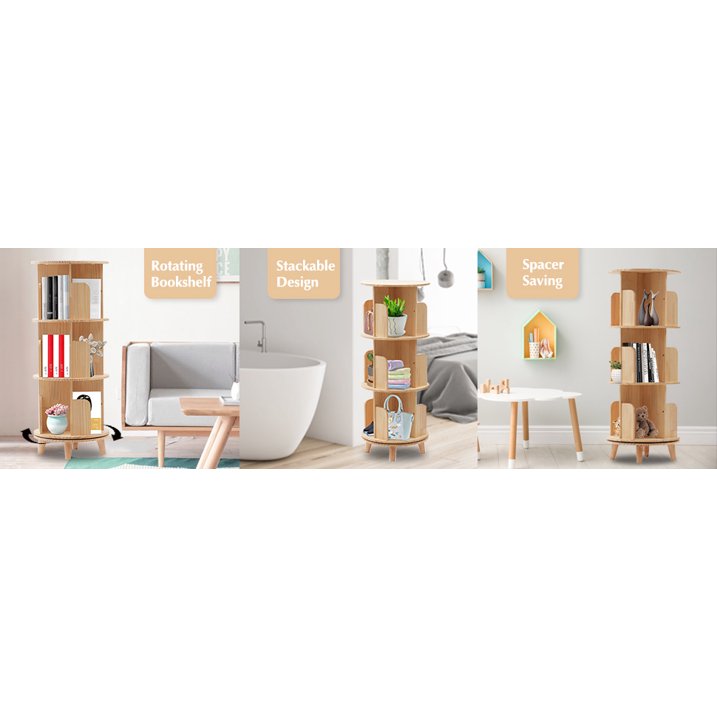 Fichiouy Wood 2-х уровневая напольная вращающаяся на 360 градусов книжная полка для спальни, гостиной, офиса