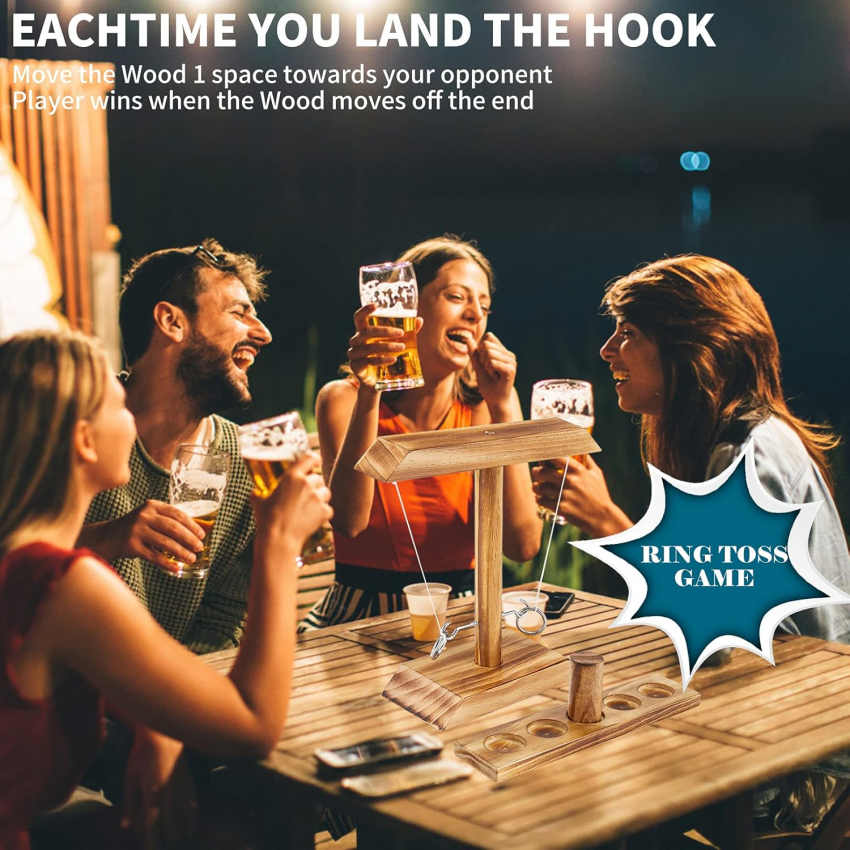 Правила просты: возьмите кольцо, нацельтесь на крюк и попытайтесь попасть. Каждое попадание перемещает деревянную чашу на одну ступень вверх, и цель игры — переместить чашу до конца лестницы. Отличный способ развлечься с друзьями и семьей, а также устроить небольшое дружеское соревнование.