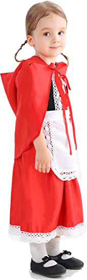 полиэстер, лайкра застежка-молния Что вы получите: красный плащ с капюшоном, красное платье, фартук и пакетик конфет. Удобно носить - Материал: 88%полиэстер и 12%спандекс Красивый костюм Красной шапочки с уникальным дизайном: красное платье, клетчатый плащ с лентами, съемный фартук. И, конечно же, накидка с капюшоном Размер 14 ( 12-14 лет)