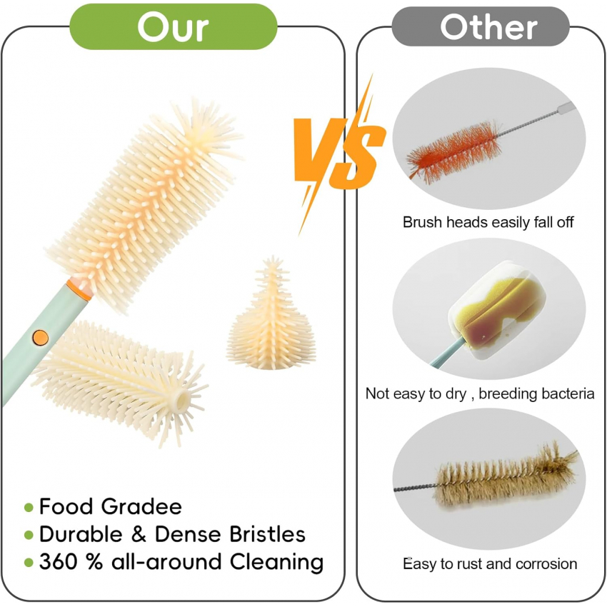 Это средство для чистки бутылочек легко удаляет загрязнения и мусор, обеспечивая безопасность и здоровье посуды для вашего малыша. Маленькая щетка — незаменимый аксессуар для путешествий с ребенком. Она компактно помещается в сумке для подгузников или сумке для переноски, что позволяет легко чистить бутылочки в любом месте. Сушилка для детских бутылочек предназначена для хранения посуды разных размеров и эффективно сушит её, помогая поддерживать порядок. Этот набор включает все необходимое для тщательной уборки дорожных бутылочек, что делает его идеальным выбором для занятых родителей. Изготовленный из прочных материалов, набор для чистки бутылочек гарантирует долгий срок службы и надежную очистку всех аксессуаров, необходимых для кормления вашего малыша.