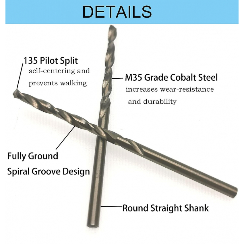 M MIMHOOY Набор кобальтовых сверл 3/16 дюйма (10 шт.), спиральные кобальтовые сверла M35 по металлу для нержавеющей стали и твердого металла