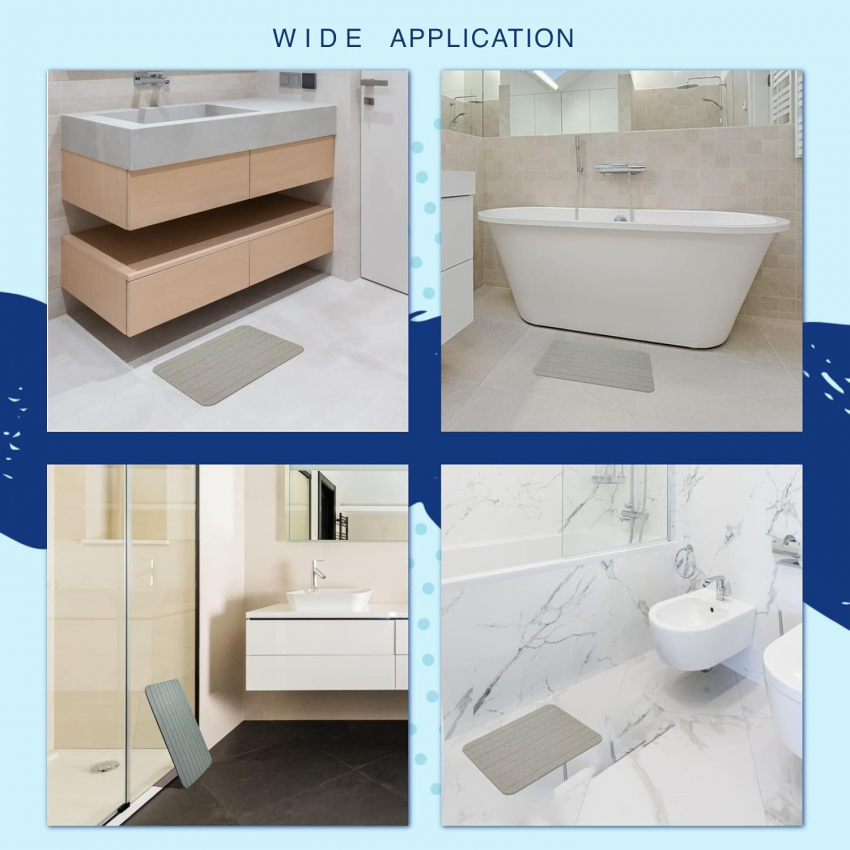 Функциональный и экологичный коврик из диатомитовой глины поможет забыть о сырости и скользком полу в ванной. Влагопоглощающее покрытие моментально впитывает воду — буквально на глазах, сохраняя поверхность пола сухой и комфортной. Благодаря противоскользящему рельефному слою и дополнительной сетчатой подложке коврик надёжно фиксируется на месте и выдерживает вес до двух человек, не сдвигаясь.