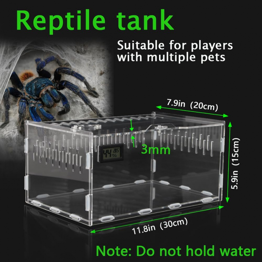 Этот акриловый террариум — идеальный дом для рептилий и амфибий, обеспечивающий 360-градусный обзор благодаря высококачественному прозрачному материалу. Вы сможете с лёгкостью наблюдать за своим питомцем в любое время. Модель идеально подходит для содержания ящериц, пауков, скорпионов, кузнечиков, praying mantis, гекконов и других экзотических животных.