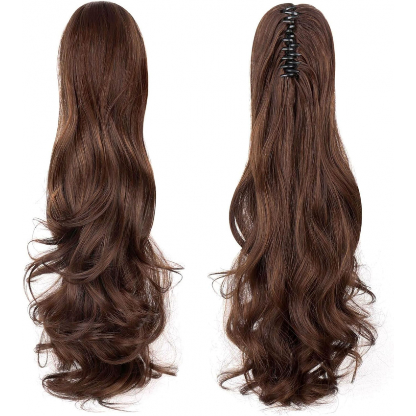 Длинные вьющиеся волосы для наращивания хвоста изготовлены из синтетических волокон премиум-класса, которые выглядят как настоящие человеческие волосы. Длина: 18 дюймов светло-коричневый