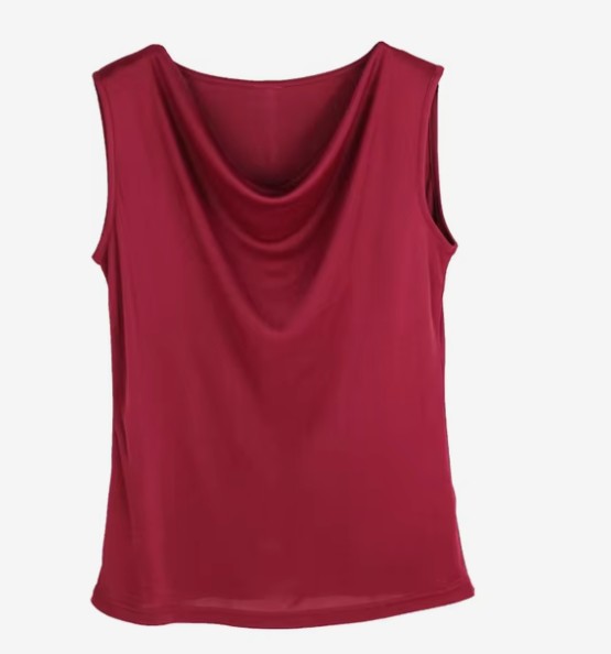 Свободный крой без рукавов обеспечивает свободу движений и подчёркивает естественную линию плеч. Ворот-водопад придаёт образу мягкость и женственность, органично сочетаясь как с повседневной, так и с более нарядной одеждой.
