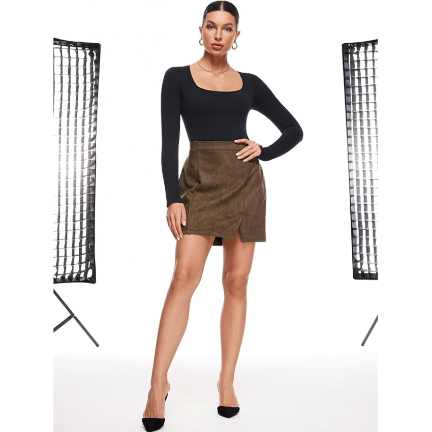 Эластичные боди с квадратным вырезом и длинными рукавами.
